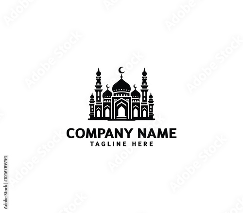 Vector silhouette mosque silhouette logo. Masjid sings template. Islamic building symbol. Masjid icon