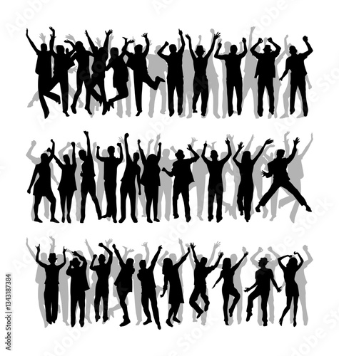 people, party, silhouette, group, illustration, happy, vector, friends, background, celebration, music, fun, man, cheerful, hand, crowd, dance, club, disco, shadow, festival, concert, isolated, audience, human, poster, event, woman, sport, banner, design, person, jump, show, spectator, joy, cheer, night, entertainment, lifestyle, light, celebrate, hand up, silhouette, nightclub, nightlife