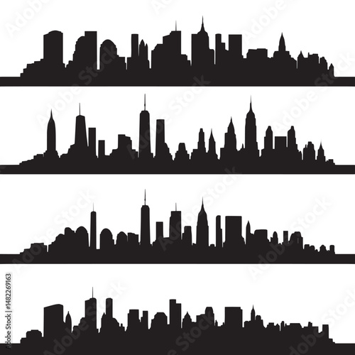 Vector silhouette set of new york city skyline on white background
