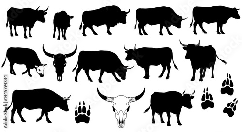 silhouette, animal, cow, vector, farm, horse, illustration, bull, goat, sheep, pig, animal, chicken, icon, wild, nature, mammal, black, collection, cervid, lamb, set, cattle, cat, elephant, farm animal, calf, beef, outline, buffalo, meat, bison