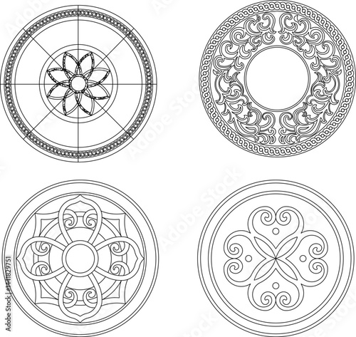 Vector sketch illustration silhouette design decoration ornament mandala rosette pattern carving classic vintage floral natural
