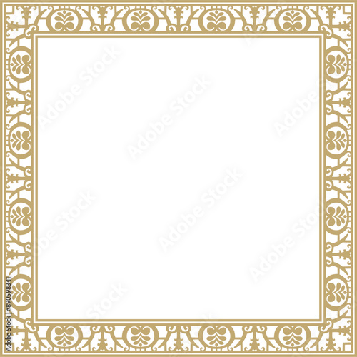Vector square gold border, frame, Pompeii. Rectangle Neopolitan ornament. Art of Ancient Rome. Template for stained glas