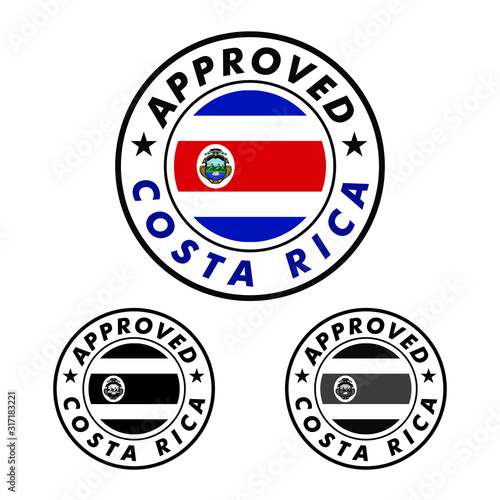 Vector Stamp of Approved logo with Costa Rica Flag in the round shape on the center