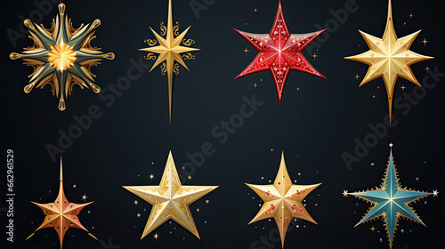 no one, christmas, star, starry, winter, shining, art, abstract, fireworks, vector, graphic, moon, shape, 5, bright, gold, snow, illustration, design, repetition