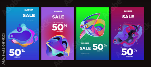 Vector summer sale 50% discount with fluid colorful background. Summer banner, website, poster, and sales promotion background set.