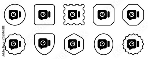icon, camcorder, line, badge, frame, container, square, rounded, fill, solid, outline, black, glyphs, navigation, interface, app, website, menu, buttons, video, camera, conference, chat, meeting, talk, call, cyberspace, bubble, speech, digital, recording, story, clip, communication, multimedia, media, videography, lens, instant, symbol, design, pictogram, illustration, web