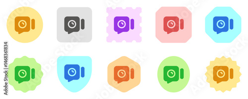 icon, camcorder, badge, frame, container, square, rounded, fill, solid, flat, colours, colourful, duotone, glyphs, navigation, interface, app, website, menu, buttons, video, camera, conference, chat, meeting, talk, call, cyberspace, bubble, speech, digital, recording, story, clip, communication, multimedia, media, videography, lens, instant, symbol, design, pictogram, illustration, web