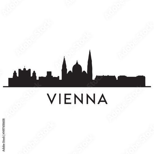 Vector Vienna skyline. Travel Wien famous landmarks. Business and tourism concept for presentation, banner, web site. Vector black silhouette. with white background
