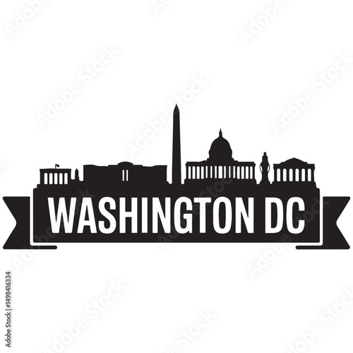 Vector Washington DC skyline. Travel Washington DC famous landmarks. Business and tourism concept for presentation, banner, web site. Vector black silhouette. with white background