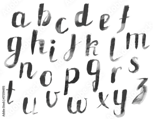 watercolor, alphabet, vector, hand, modern, abcs, brushed, drawn, font, letter, type, typography, write, design, vignetting, graphic, illustration, set, signs, rudiments, character, isolated, style, symbol, cute, calligraphy, black, text, collection, background, white, black-and-white