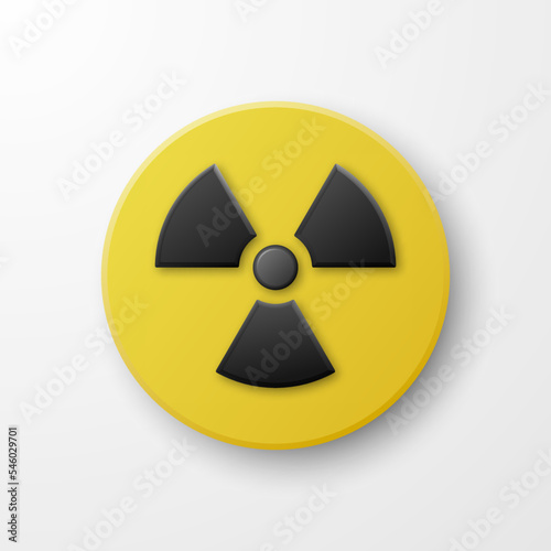 Vector Yellow Warning, Danger Radiation Sign, Button Badge Icon Isolated. Nuclear Power Station, Radioactive Warning Symbol. Circle, Round Dangerous Sign. Design Template. Top View