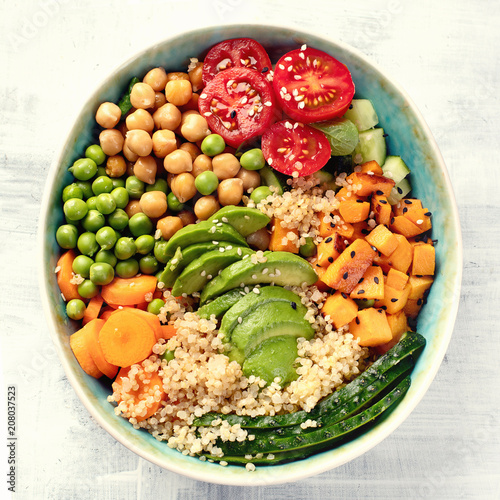 bowl, buddha, salad, healthy, food, vegan, vegetarian, meal, avocado, fresh, dinner, diet, organic, lunch, balanced, vegetable, colourful, eating, detox, snack, mix, trend, up high, overhead, seed, green, raw, nourishment, lettuce, vegetarian, top, view, chickpea, tomatoes, potato, sweet, pumpkin, sesame, pea, cucumber