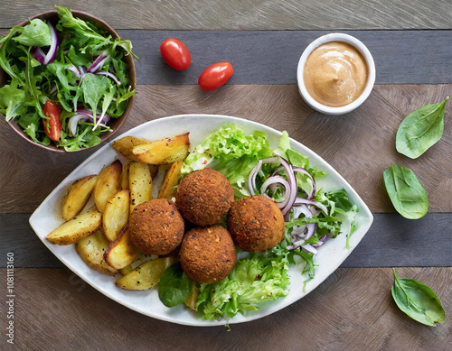 vegan, food, dinner, meal, potato, salad, ball, vegetarian, vegetable, oriental, chickpea, plate, no people