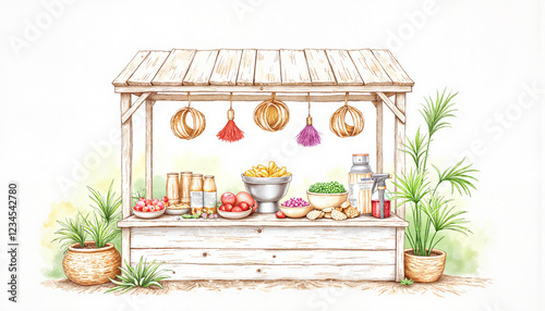 Vegetable stall with assorted produce in a rustic style
