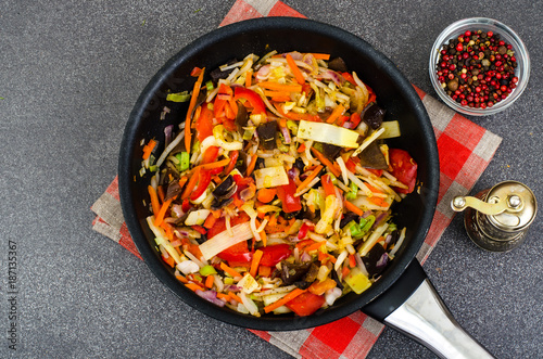 fries, stir, food, pan, chinese, cookery, wok, asian, ginger, dinner, green, cooking, carrot, asparagus, bean, paprika, onion, meal, closeup, pepper, vegetable, vegetable, healthy, background, eatery, traditional, dish, cook, delicious, stir fry, epicure, ingredient, garlic, sauce, thai, orange, view, top, fast, oriental, colourful, mushroom, broccoli, cut, spoon, chili, chopped