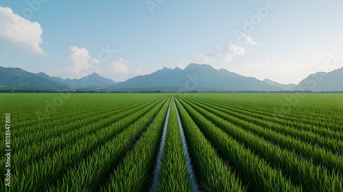 field, rice, paddy, landscape, rural, agriculture, nature, scenic, tranquil, serene, lush, green, rolling, mountain, hill, horizon, vista, countryside, farm, cultivation, harvest, growth, beautiful, idylli, peaceful, calming, atmospheric, bucolic, panoramic, pastoral, picturesque, verdant, agrarian, rustic, harmonious, contemplative, soothing, rejuvenating, restorative, natural