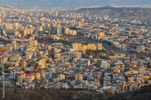 Vere, Didube and Vake districts of Tbilisi sunrise scenic view from Mtatsminda Mountain