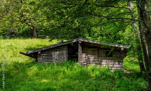 verlassene Blockhütte am Thumsee, Bad Reichenhall, Bayern, Deutschland