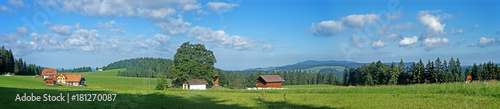 countryside, nature, house, hike, walk, blue skies, german, europa, panorama, black forest, mountain, vale, forest, meadow