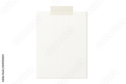 Vertical blank white textured paper is attached with adhesive tape to a transparent background