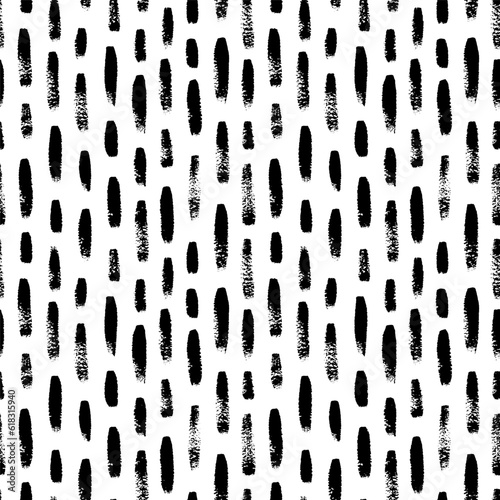 Vertical brush strokes seamless pattern. Black and white organic texture with scribble strokes. Rain abstract seamless pattern. Geometric simple ornament with vertical dashes or drops.