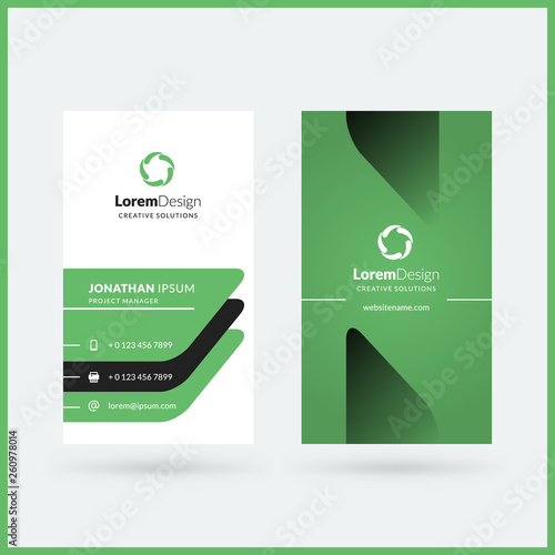 Vertical double-sided business card template. Vector illustration. Stationery design