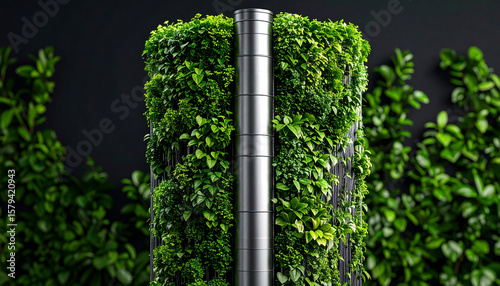 Vertical Garden Oasis: The image presents a striking vertical garden pillar, its metal structure artfully enveloped in vibrant green foliage.