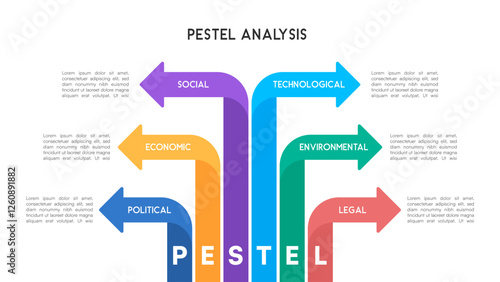 pestel, analysis, infographic, business, strategy, political, economic, social, technically, environmental, legal, arrow, vertical, sideway, colourful, icon, framework, industry, marketing, finance, planning, regulation, impact, leadership, governance, sustainability, organisation, consultancy, growth, competition, success, development, decision, research, corporate, investment, technology, element, future