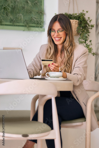 young adult, finance, banking, credit card, paying, e-business, consumerism, buying, payment, purchase, credit, bank, shopper, web, beautiful woman, beige, business, businessperson, businesswoman, cafes, caucasian, ceo, cheerful, coffee cup, computer, copy space, corporate, desk, entrepreneur, female, happy, vertical, indoor, cyberspace, lady, laptop, lifestyle, manager, modern, office, one person, online, portrait, productivity, professional, sitting, smile, success, using