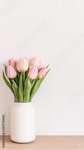 bouquet, tulip, modern, vertical, pink, white, vase, home, decor, elegant, floral, arrangement, flower, minimalistic, interior, design, aesthetic, spring, freshness, simplicity, bloom, nature, decorative, tranquil, soft, pastel, peaceful, clean, stylish, contemporary, beauty, vibrant, delicate, graceful, serene, plant, ornament, lush, artwork, harmony, chic, gentle, lovely, sophisticated, soothing, refined