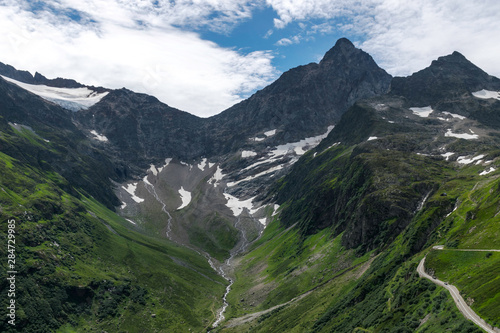 very beautiful landscape on Sustenpass, Stein Glacier in Swiss alps in summer.