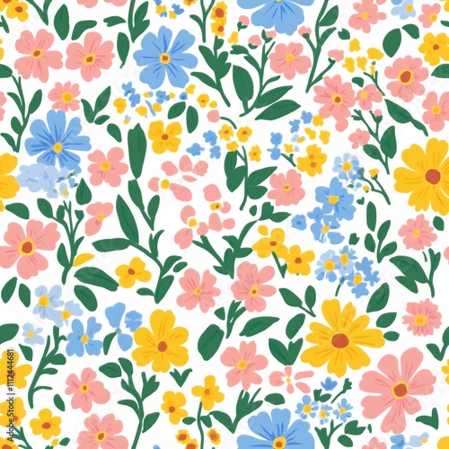 pattern, floral, seamless, spring, background, print, vector, summer, cute, pink, pastel, daisy, garden, vintage, botanical, green, wallpaper, retro, yellow, design, bright, blossom, leaf, blue, girlie, texture, nature, textile, fashion, fabric, art, childcare center, meadow, plant, flower, illustration, colourful, baby shower, decoration, blooming