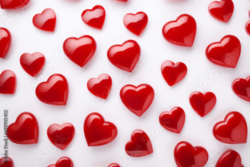 Vibrant 3D Rendered Heart Symbols Pattern on White Background, Gift, Love, and Valentine Day Celebrations, High-Quality Illustration