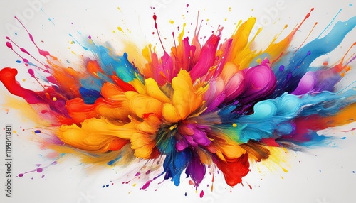 Vibrant Abstract Artwork Colorful Paint Splash Explosion on White Background, Offering a Bold and Dynamic Palette of Colors in an Energetic Art Composition, Showcased on at.