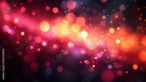 Vibrant abstract background with red and orange bokeh lights and glittering particles