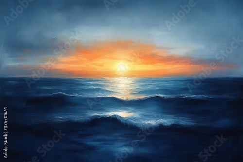vibrant abstract coastal scene at sunrise blending rich blues of the sea and sky creating a serene and uplifting atmosphere for artistic expression