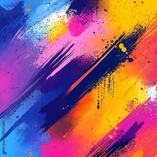 Vibrant abstract paint splashes, diagonal dynamic strokes