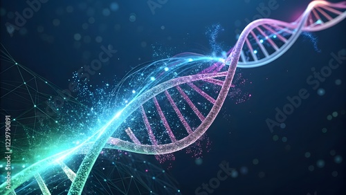 Vibrant Abstract Representation of DNA Helix with Particle Effects