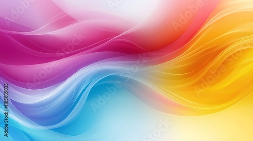 Vibrant abstract waves of pink, orange, and blue blend harmoniously, creating a soothing yet energetic backdrop.