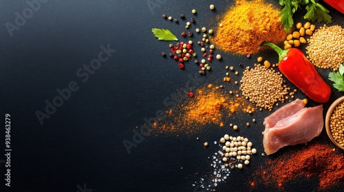 african, spice, vibrant, colourful, food, presentation, energetic, fresh, meat, grain, culinary, cooking, ingredient, seasoning, exotic, cultural, herb, flavorful, traditional, cookery, dynamic, copy, space, concept, styling, aromatic, organic, photo