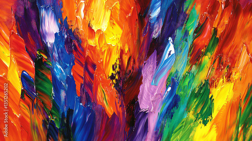 Vibrant and colorful abstract painting featuring multihued strokes and layers of paint by an artist filled with creative energy and imagination.
