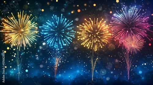 Vibrant and Dazzling Fireworks Bursting in Brilliant Colors and Illuminating the Night Sky Marking the Joyous of the New Year 2025