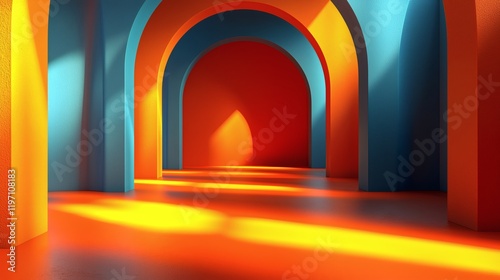archway, abstract, architecture, design, modern, contemporary, colourful, vibrant, bright, sunlight, shadow, light, geometric, minimalist, texture, curve, interior, three-dimensional, render, futuristic, pattern, style, artistic, creativity, digital artwork, illustration, graphic, abstract art, abstract background, modern architecture