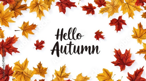 autumn, leaf, fall foliage, seasonal, greeting, vibrant, red, orange, yellow, nature, decoration, frame, season, festive, autumn color, background, illustration, art, botanical, symbolic, natural, texture, pattern, design, colourful, beauty, fall season, text, typography, message, artistic, aesthetic, visual, deciduous, maple, celebration, welcome, transition, crisp, chilly, environment, flora, graphic
