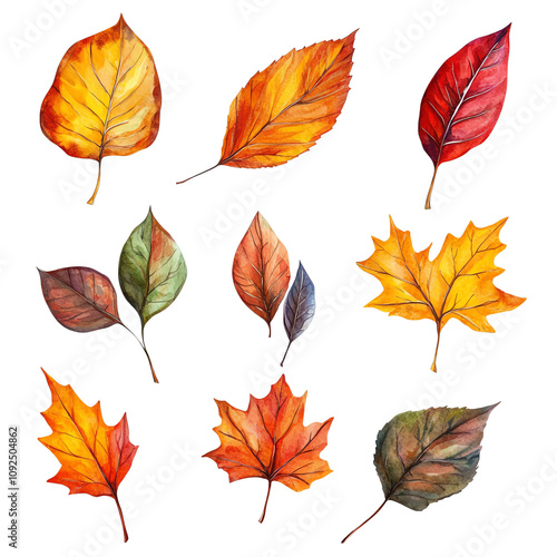 Vibrant autumn leaves in various colors, perfect for seasonal decorations, nature-themed designs, and artistic projects.