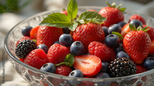 Vibrant Berry Salad with Fresh Mint in a Glass Bowl - Spring