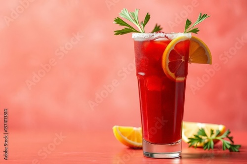 cocktail, celery, red background, tomato juice, alcoholic beverage, food and drink