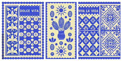 folk art, illustration, pattern, motif, floral, flower, leaf, vase, sun, star, geometric, ornamental, border, frame, design, graphic, artistic, hand-made, craft, vibrant, colourful, blue, yellow, cream, text, quote, inspirational, dolce vita, celebration, joy, happiness, positive, summer, spring, festive, ethnic, bohemian, eclectic, whimsical, stylised
