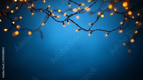 Vibrant blue background featuring twinkling Christmas garland lights, perfect for creating a cozy and festive ambiance.