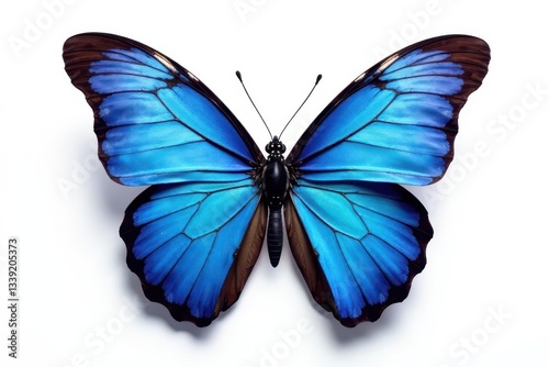 Vibrant blue butterfly with colorful wings, isolated on white , artwork, texture, pattern